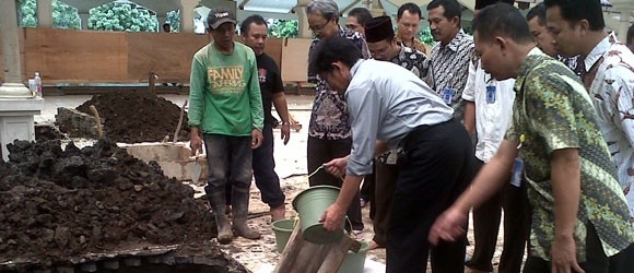 Direktur Utama PT Dirgantara Indonesia (Budi Santoso) melakukan pengecoran perdana pada Pembangunan Gedung Serbaguna Masjid Raya Habiburrahman.....