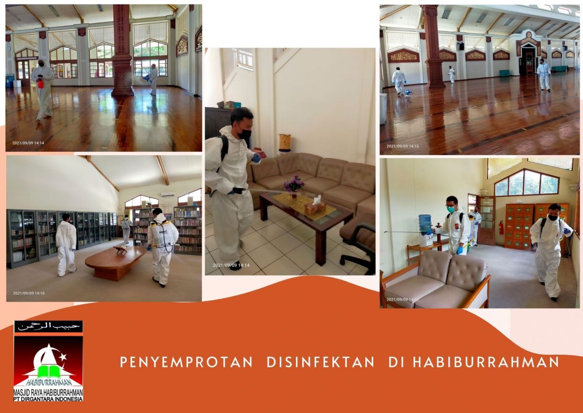Penyemprotan dilakukan pada Ruang Utama Masjid Raya Habiburrahman, Ruang Perpustakaan, Ruang Sekretariat DKM dan juga Ruang Ketua DKM Habiburrahman.
