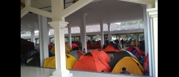 Sebagian Peserta Itikaf mendirikan tenda