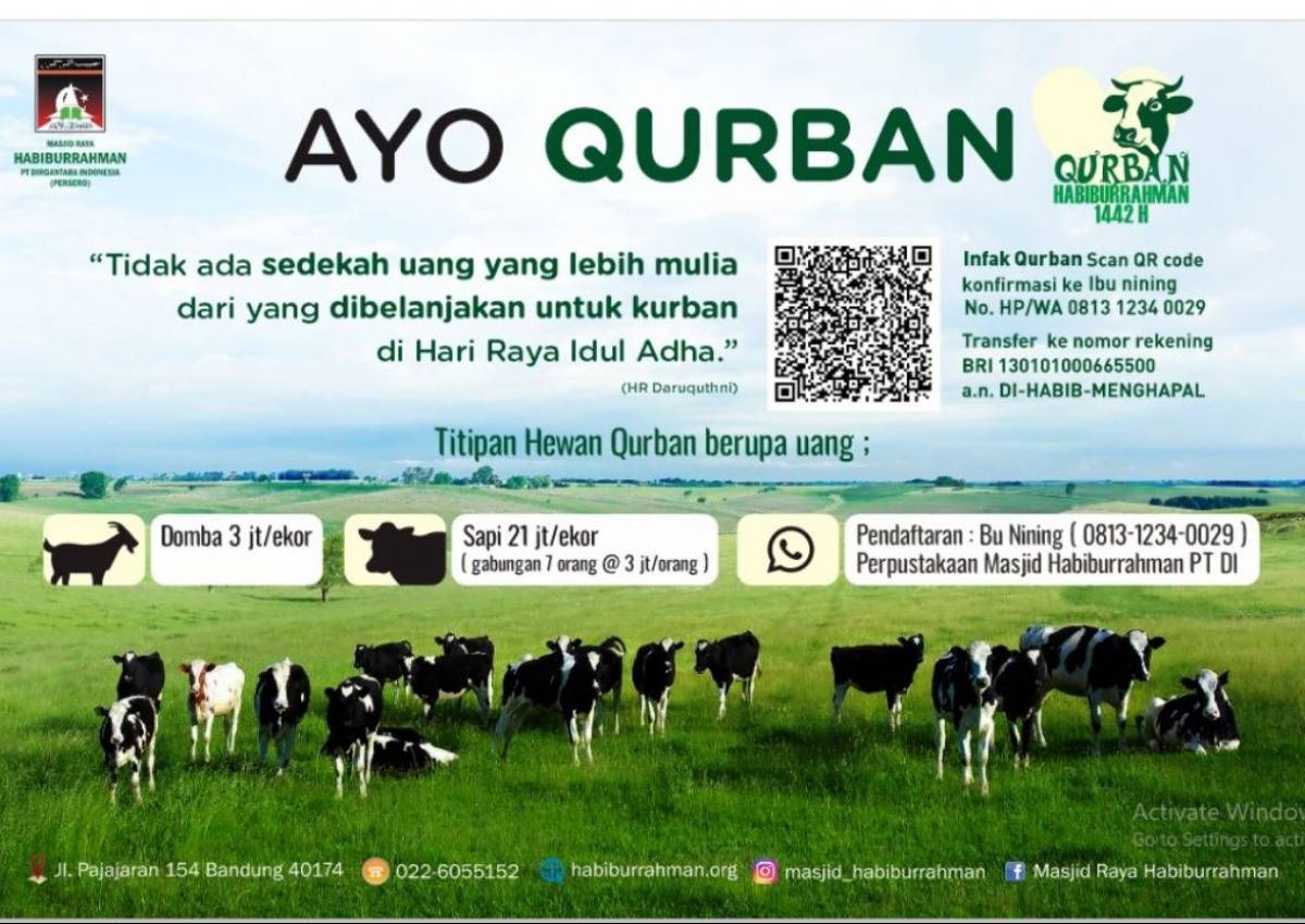 Panitia Qurban Habiburrahman 1442 H / 2021, menerima titipan Hewan Qurban dari Jama'ah Masjid Raya Habiburrahman. In Syaa Alloh daging qurban akan disalurkan kepada Masyarakat di sekitar Masjid Raya Habiburrahman PT. Dirgantara Indonesia (Persero).